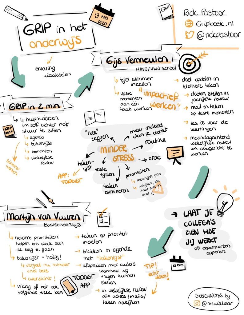 Ik merk dat veel mensen in het onderwijs zoekende zijn naar een efficiënte manier van werken met de agenda, mail en takenlijsten. Hoe krijg je alles geplant? En het percentage burn-outs in het onderwijs ligt schrikbarend hoog. Ik denk dat het werken volgens GRIP hier verandering in kan brengen.