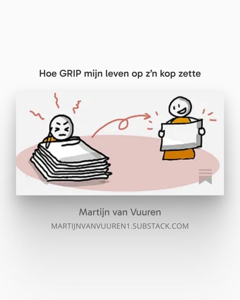Dat had ik met het boek GRIP van Rick Pastoor. Wat begon uit nieuwsgierigheid, groeide uit tot een dagelijkse manier van werken die mij rust, overzicht, richting en flexibiliteit geeft. Niet door minder te doen, maar door bewuster te kiezen.